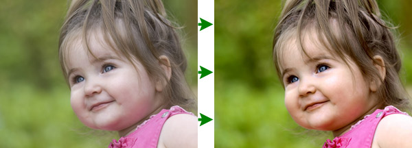 The sharpening feature adds perceived sharpness and detail to any photo. Scene image with lots of detail benefit most from extra sharpening. For example, nature photos (trees, leaves, beaches, etc.) greatly benefit from sharpening. In portrait photos, a certain amount of smoothness to de-emphasize blemishes is desirable, and so extra sharpening is not always as important. When using sharpening, remember to use the special 'sharpening preview' window (by clicking the 'Preview' button on the sharpening tab page) to accurately see the effect of sharpening on your image. Sharpening is NOT shown in the 'Final Image' preview image. This is because image sharpness and noise can only reliably be judged when a photo is shown at it natural resolution.